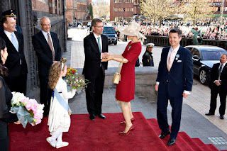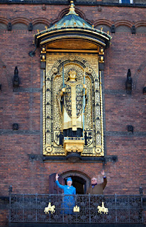 At 12:40 queen Margrethe & prince Henrik were driven in an open carriage to the Copenhagen town hall for a reception and another balcony scene. Streets were lined with people, at least 50.000 Danes showed up for the queen and her family.